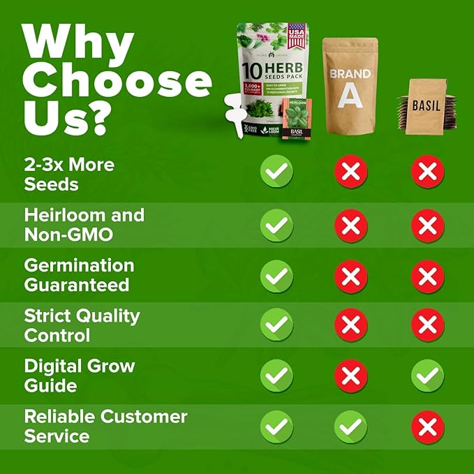 - High-Quality, Non-GMO & Heirloom Herb Seeds: This selection features 4,500+ seeds from 15 heirloom herb varieties that are completely non-GMO.These herb seeds are perfect for those seeking a sustainable, eco-conscious way to grow herbs indoors or in backyard garden beds. With high germination rates, they provide dependable results whether grown hydroponically or in soil. Ideal for those searching for the best herbs to grow indoors or outdoors with long-lasting yields season after season.