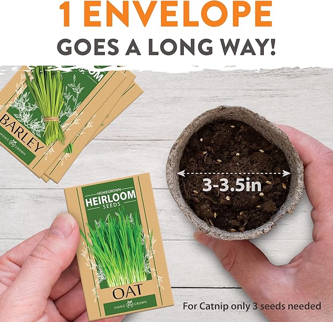 - Perfect Gift for Pet Parents: Thoughtfully packaged and easy to use, this 3-pack of cat grass seeds is a wonderful gift for any cat owner. It provides hours of stimulation for pets while also supporting their health. Whether you're shopping for your own pet or gifting a cat lover, this seed mix is as practical as it is appreciated.