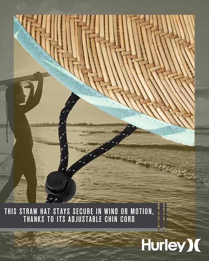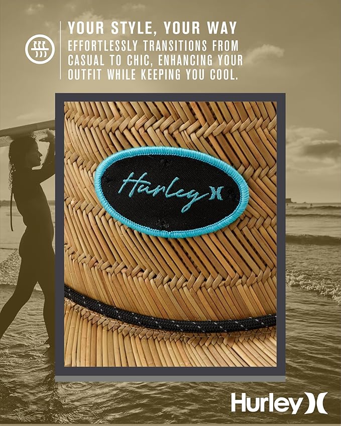 Hurley Women's Straw Hats - Real Straw Hat Medium Brim and Adjustable Chin Strap