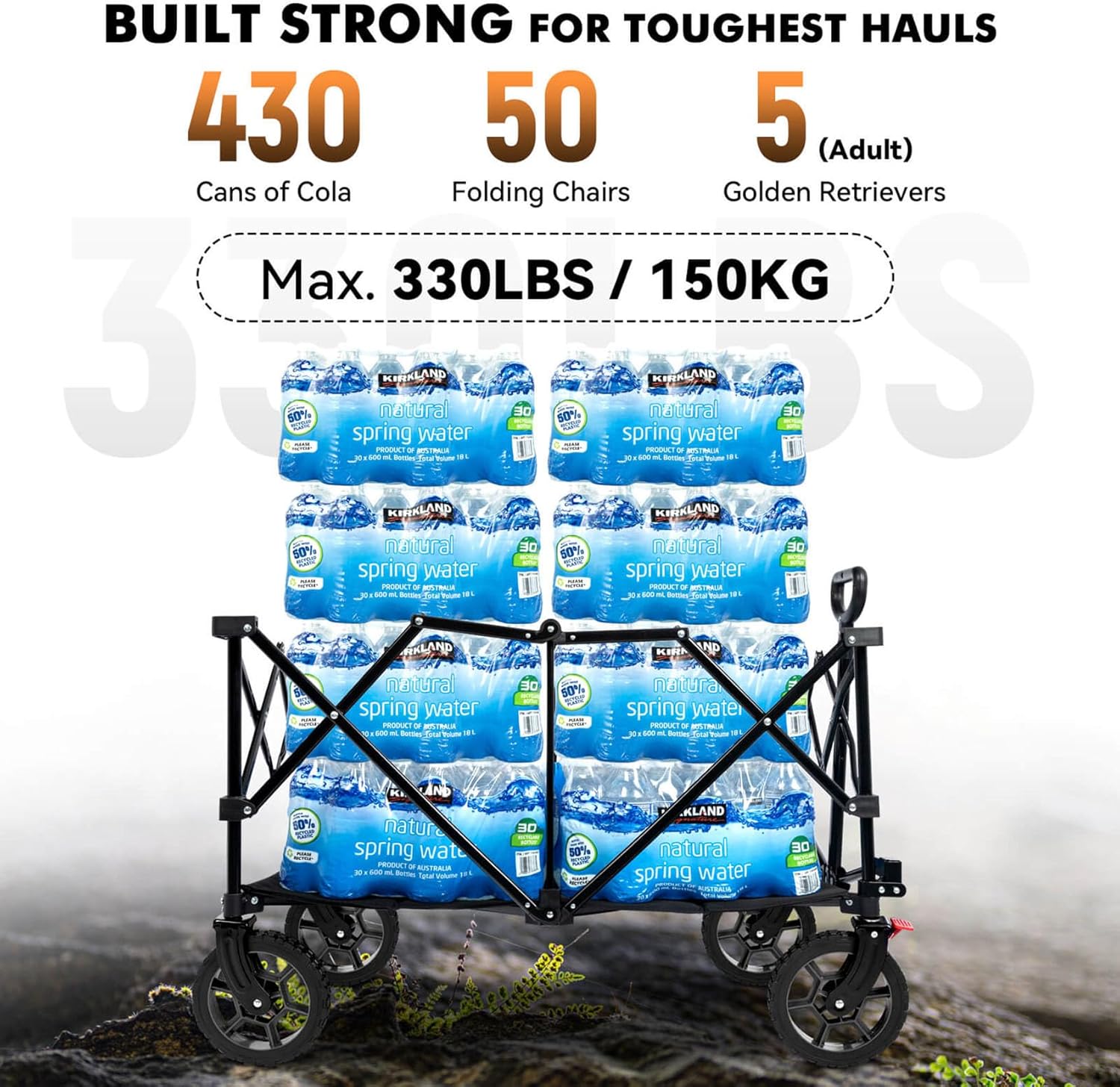 Hikenture Collapsible Wagon - 330LBS Capacity, Extra Large Foldable Wagon with All-Terrain Wheels, Utility Beach Cart for Outdoor Garden