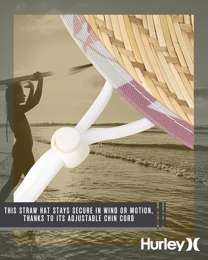 - DESIGN THAT INSPIRES CONFIDENCE: The Hurley Women's Straw Hat combines the perfect balance of beach-chic and sun protection. Its medium brim delivers a flattering silhouette while shielding your face from harmful UV rays. Whether you’re lounging at the shore or strolling through a sun-soaked park, this hat will keep you looking effortlessly stylish. Crafted from real straw, it adds that natural, laid-back vibe that sun hats for women should offer