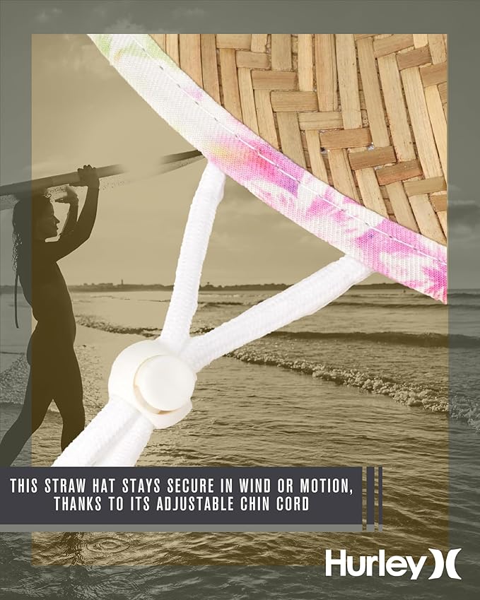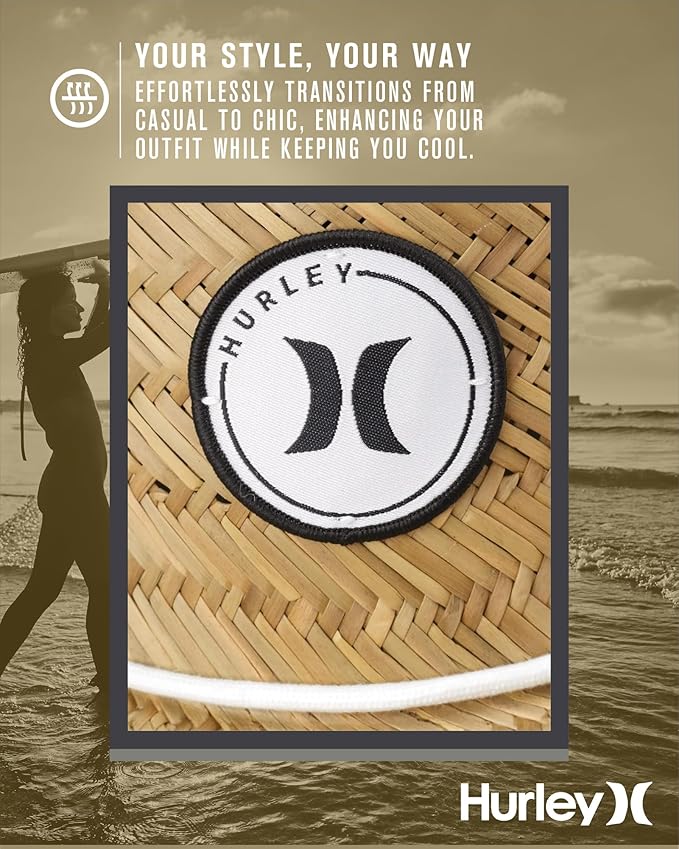 - DESIGN THAT INSPIRES CONFIDENCE: The Hurley Women's Straw Hat combines the perfect balance of beach-chic and sun protection. Its medium brim delivers a flattering silhouette while shielding your face from harmful UV rays. Whether you’re lounging at the shore or strolling through a sun-soaked park, this hat will keep you looking effortlessly stylish. Crafted from real straw, it adds that natural, laid-back vibe that sun hats for women should offer