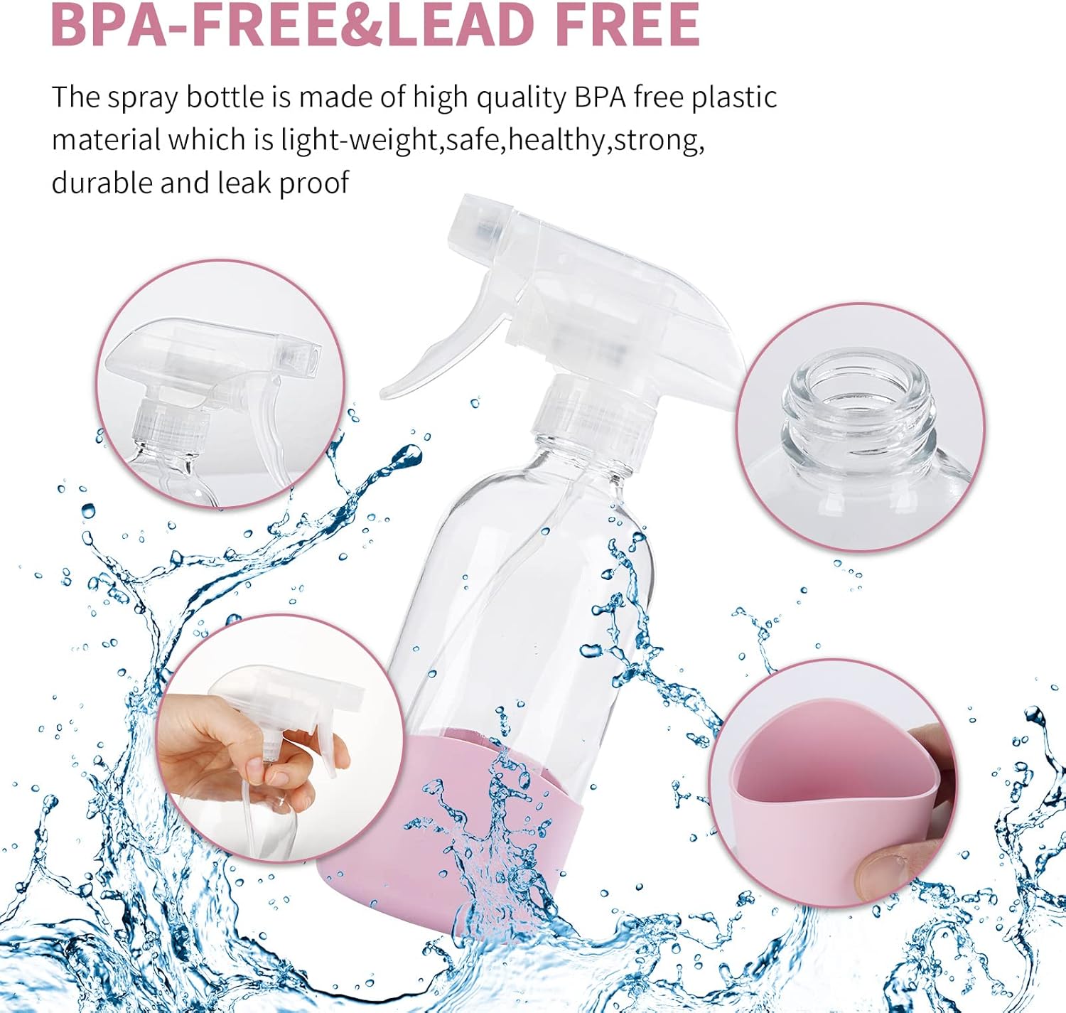 - Environmental protection and durability: The spray nozzle is made of environmentally friendly PP new material, without impurities. The silicone protective cover is added to the bottom of the bottle to offer it an extra layer of protection and make it more durable.