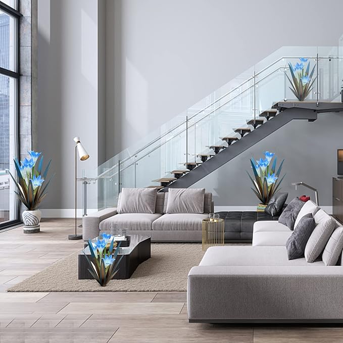 Homight Metal Agave Plant Outdoor Decoration Outdoor Garden Decoration Lily Mexican Yard Art Plant Garden Agave Lily Decorative Garden Gift… (3 Big Blue Lilies)