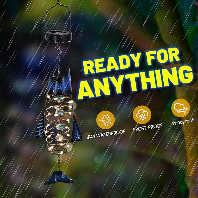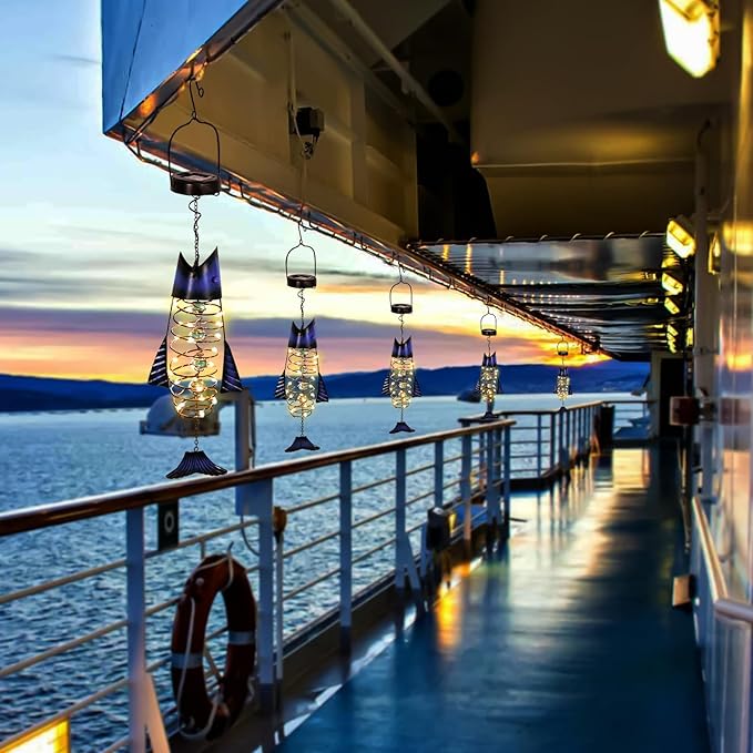 - 【Solar Lights for Hanging Outside】- These solar fish lights emit a warm, welcoming ambiance that makes them perfect for holiday decor, garden security lighting, front door or hallway lighting, and courtyard party decorations. They're ideal for decorating yards, gardens, patios, lake houses, lawns, porches, gates, balconies, and beaches