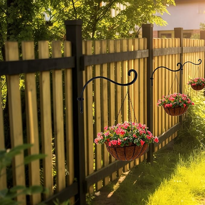 - Easy to Install: Setting up the Plant Baskets Hooks is breeze. A full set of mounting hardware is included, that make it easy to install it on wooden fence posts, deck rails, or interior and exterior walls.