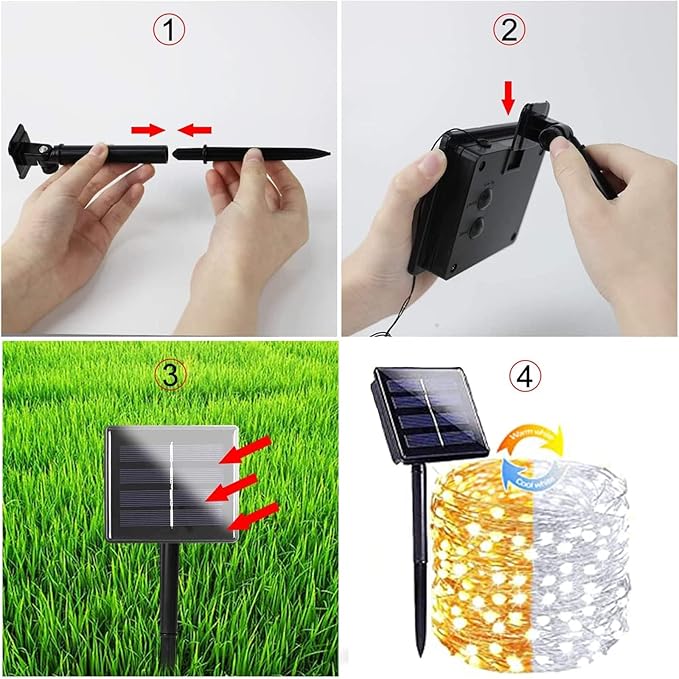 - Solar Powered & Auto On/Off: This string lights for outside is solar powered and waterproof, no electricity cost. Larger Christmas solar panel with quick charging technology, bring you higher solar energy conversion, it can work up to 10-12 hours after being fully charged (8 hours). Just place the battery panel in sunny area, it will automatically charge at daytime and light up at night.