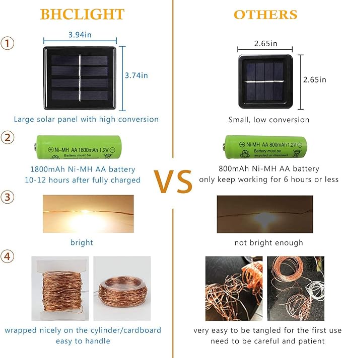 - Upgraded 2 Pack Super Bright Solar Christmas Lights: Cute shaped, powerful 1800mAh Capacity Battery, Super Bright Total 200 LED 80FT, Upgraded Larger LED Beads, IP65 Waterproof Performance. Durable Flexible Copper Wire, Quick Charging Technology, Color Temperature Switchable (Warm White / Cool White), Romantic Christmas Decorations. Solar string lights outdoor waterproof will be a great choice.