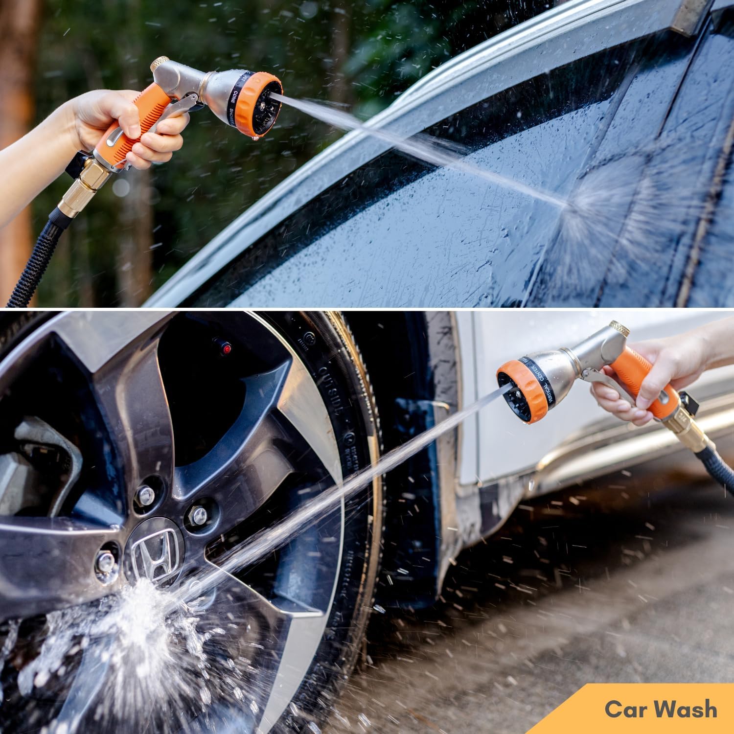 HOSUN Garden Hose Nozzle Sprayer Heavy Duty, 100% Metal Water Hose Nozzle with 8 Spray Patterns, High Pressure Hose Spray Nozzle with Non-Slip Grip for Watering Plant & Lawn, Washing Car & Pet, Orange