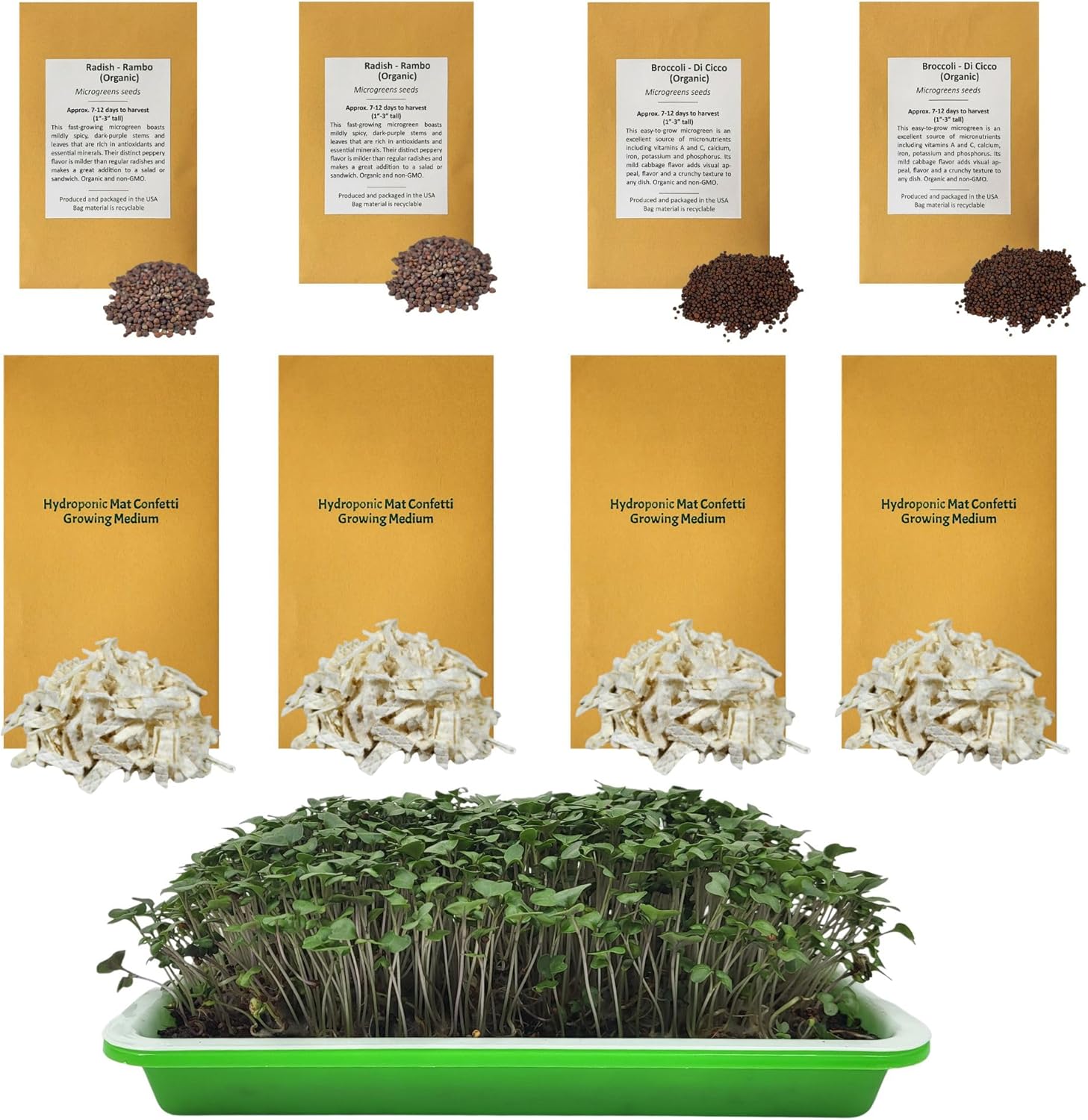 - EXTEND THE ENJOYMENT OF YOUR INDOOR GARDEN: Maximize the value of your Alpas Life Complete Home Microgreens Kit (sold separately) by growing a continuous supply of nutrient-rich microgreens. This indoor microgreen kit refill 4-pack features hydroponic mat confetti growing medium that is precisely pre-measured for organic microgreens growing success. Organic Radish and Broccoli seeds sourced in USA.