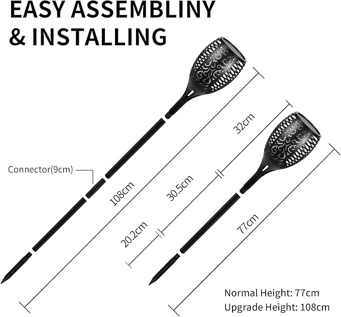 - Gorgeous Dancing Flames: Our self-charging solar lamps charge by day and turn on automatically at night. They have 3 beautiful modes; Flickering Flames, Slow Fade from On/Off/On, or Full Brightness. They are gorgeous and attractive and look fantastic as decorative outdoor lighting. Whether lining pathways and driveways, placed in gardens, or just used during the holidays such as Halloween or Christmas, these light can do it all.