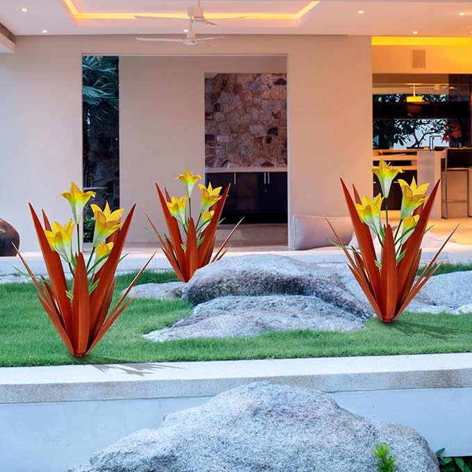 Homight Metal Agave Plant Outdoor Decoration Outdoor Garden Decoration Lily Mexican Yard Art Plant Garden Agave Lily Decorative Garden Gift… (2 Big Yellow Lilies)