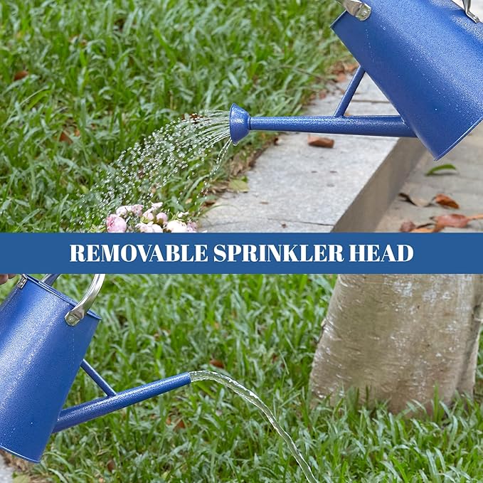 - 【1.5 GALLON WATERING POT WITH SPOUT】-This water pot looks compact but actually has a 1.5 gallon(5.7L) large capacity and is perfect for any plants,bringing joy to the task of watering indoor and outdoor plants.Features a sprinkler head for for efficiently watering plants and it is is removable for steady-stream watering.
