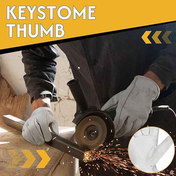 • Designed for Comfort & Flexibility: No more stiff, uncomfortable work gloves. The ergonomic curved design ensures these leather gloves fit your hands perfectly, providing maximum comfort while you work. With soft yet thick cowhide material and high-quality stitching, these mens leather work gloves are foldable and won’t lose their shape, making them as reliable as they are comfortable