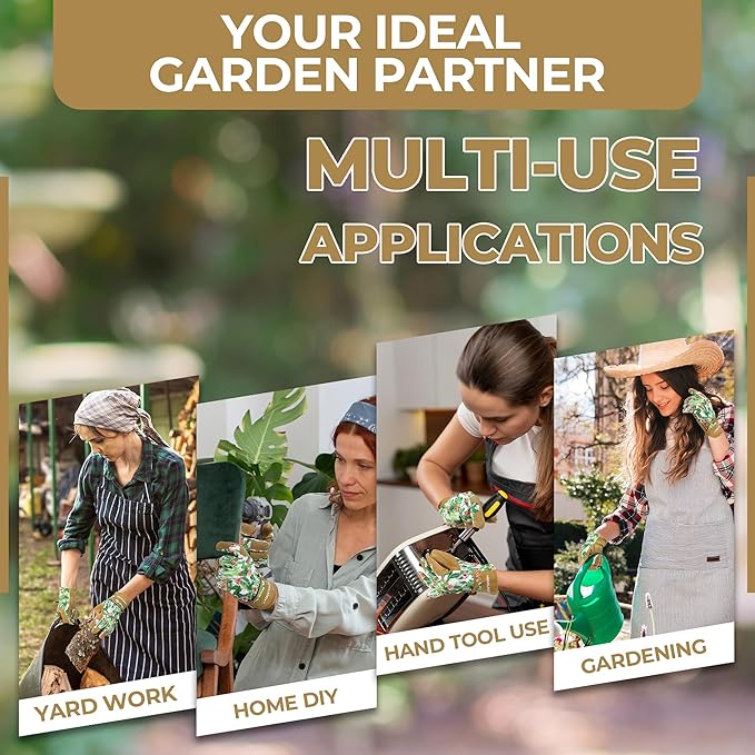 - Womens Floral Gardening Gloves - Soft deerskin leather palm, superior abrasion and puncture resistance provides perfect protection for your hands.